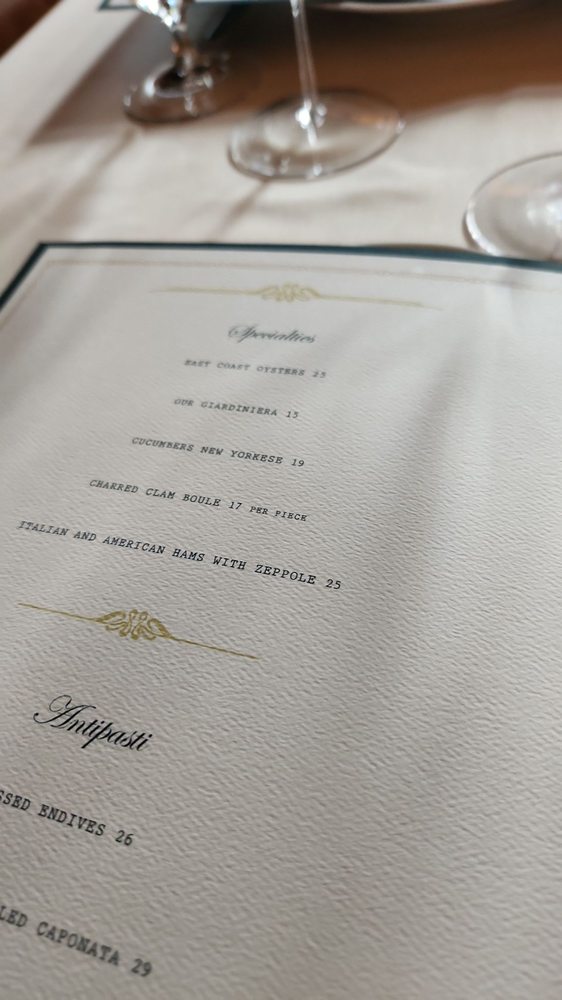 Introducing Torrisi, an upscale Italian restaurant located at 275 Mulberry St in New York, NY. This trendy and intimate spot offers a range of delicious dishes, including a standout turkey sandwich and a must-try affogato for dessert. The menu also features Tortellini Pomodoro and Cavatelli with Jamaican Beef Ragu, both well-executed but not necessarily showstopping. The ambiance is charming, with an open kitchen layout that lets you see the chefs in action. The service is top-notch, creating a welcoming and relaxing dining experience. Overall, Torrisi receives high praise from customers for its delectable food, impeccable service, and warm atmosphere. It's a must-visit for those seeking a memorable Italian dining experience in the heart of NYC.